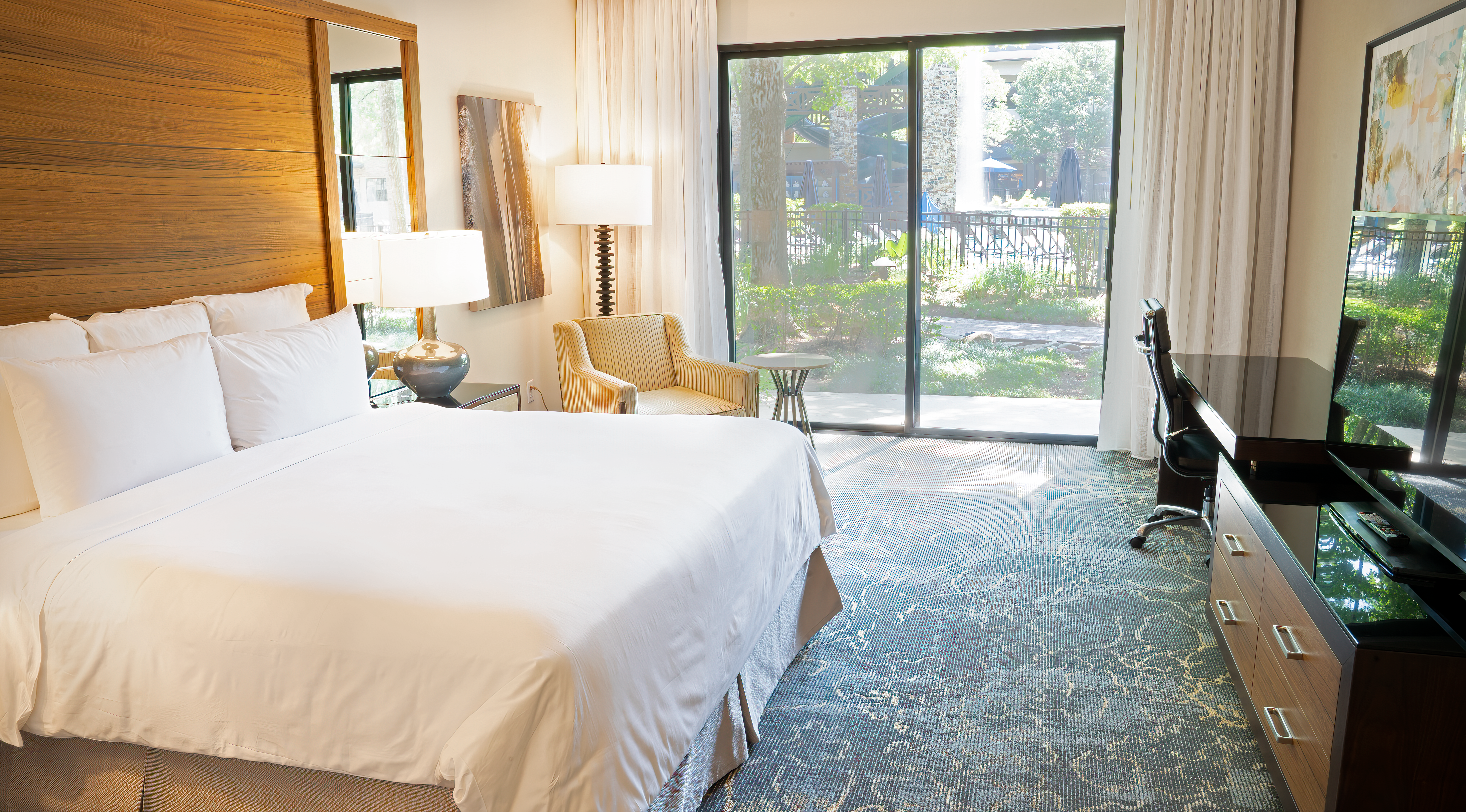 The Woodlands Resort is in the process of an extensive, $26-million dollar refresh with the goal of cementing the property’s ranking among the best resorts in Texas. In addition to thoughtful, property-wide guestroom enhancements that include upgrades and a new look for suites, three new dining outlets – one with a coffee bar – are nearing completion, as is a specialty boutique offering sundries, plus a spotlight on unique finds from local designers and makers. An amplified conference center and event experience is also in the works and the guest reception lobby will be finished in June with a focal point being the lighting feature which is designed to mirror the fauna and floral from the local area. Throughout The Resort, guests will enjoy new pieces from Texas-based artists. Rooted in nature and enhancing the connection to The Resort’s picturesque setting, the imagery incorporates pops of color, a mix of textures and bold patterns.